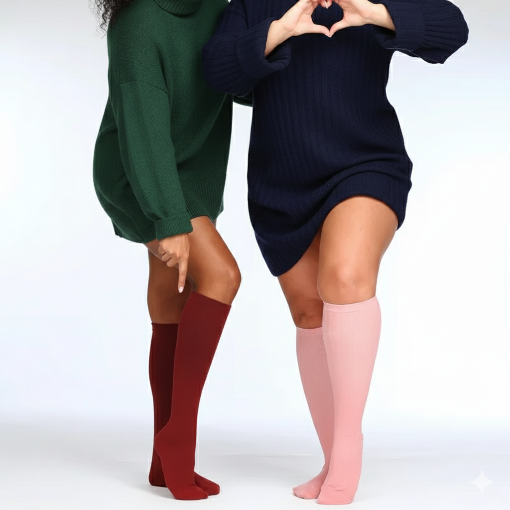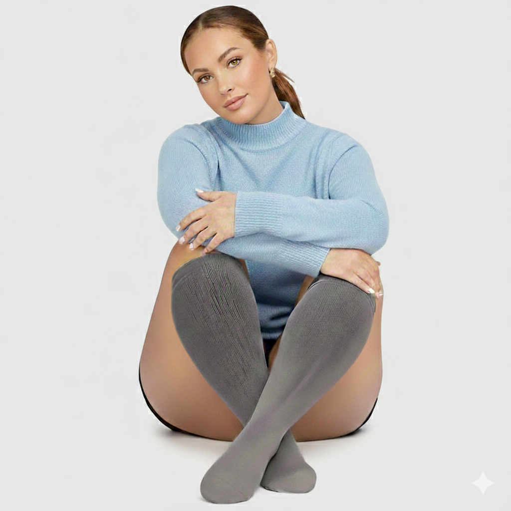 הגרביים עוטפות את השוקיים בעדינות ומעודדות זרימת דם טבעית ובריאה, תוך שמירה על תחושת נוחות - ללא לחץ מוגזם.